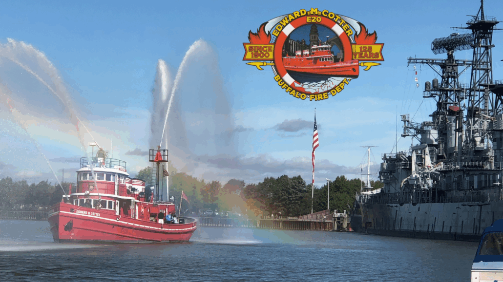 Join the Buffalo Naval Park and the Fireboat Edward M. Cotter Conservancy on Saturday, September 6, for a special VIP experience to celebrate the 125th anniversary of the E.M. Cotter’s arrival in Buffalo. The event will begin inside the Hangar Building at 9:00 AM with breakfast and a presentation on the Fireboat’s 125 years of service to Buffalo and Western New York. Guests will then watch the reenactment of the Fireboat E.M. Cotter’s arrival from a viewing area aboard USS Little Rock.