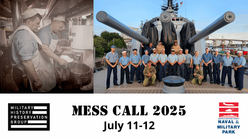 July 11-12 is Mess Call at the Buffalo Naval Park! In partnership with the Military History Preservation Group, reenactors from across the United States will be gathering to bring the USS The Sullivans and USS Little Rock to life. The ship’s company will conduct general quarters and gunnery drills on USS The Sullivans. Period-correct food will be prepared from the U.S. Navy cookbook in the galley of USS Little Rock. This is an event history buffs and food fanatics alike will not want to miss!