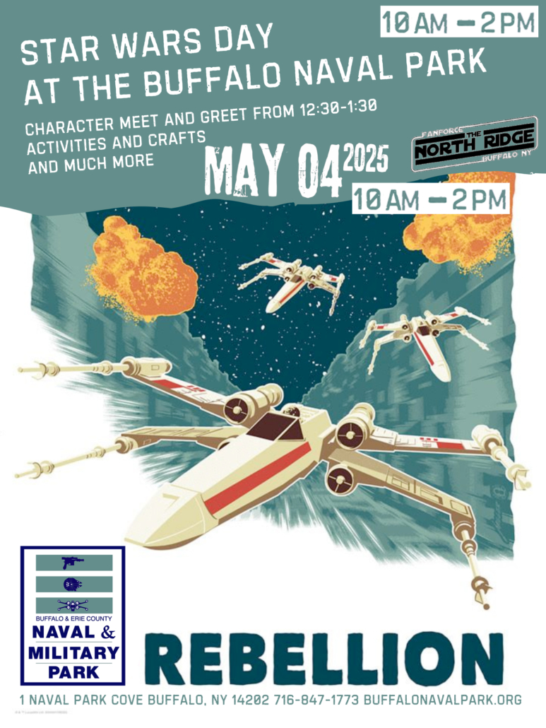 Plan your visit to the Buffalo Naval Park on May the 4th for a special Star Wars Day event. All activities will take place in the Hangar Building and are free with Naval Park admission.