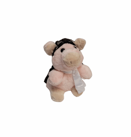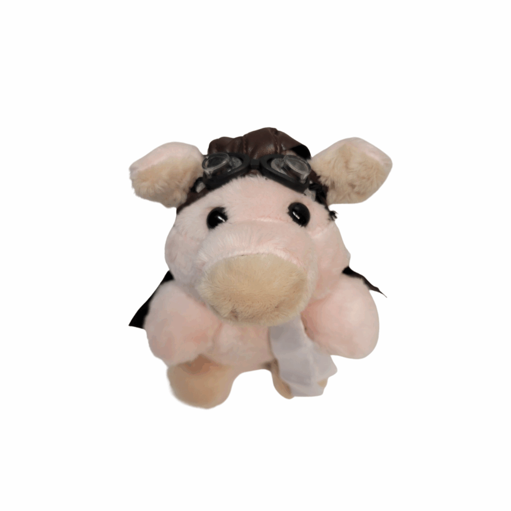 This adorable pig stands 5 inches tall. So soft and cuddly, wearing his flight helmet, goggles and scarf.