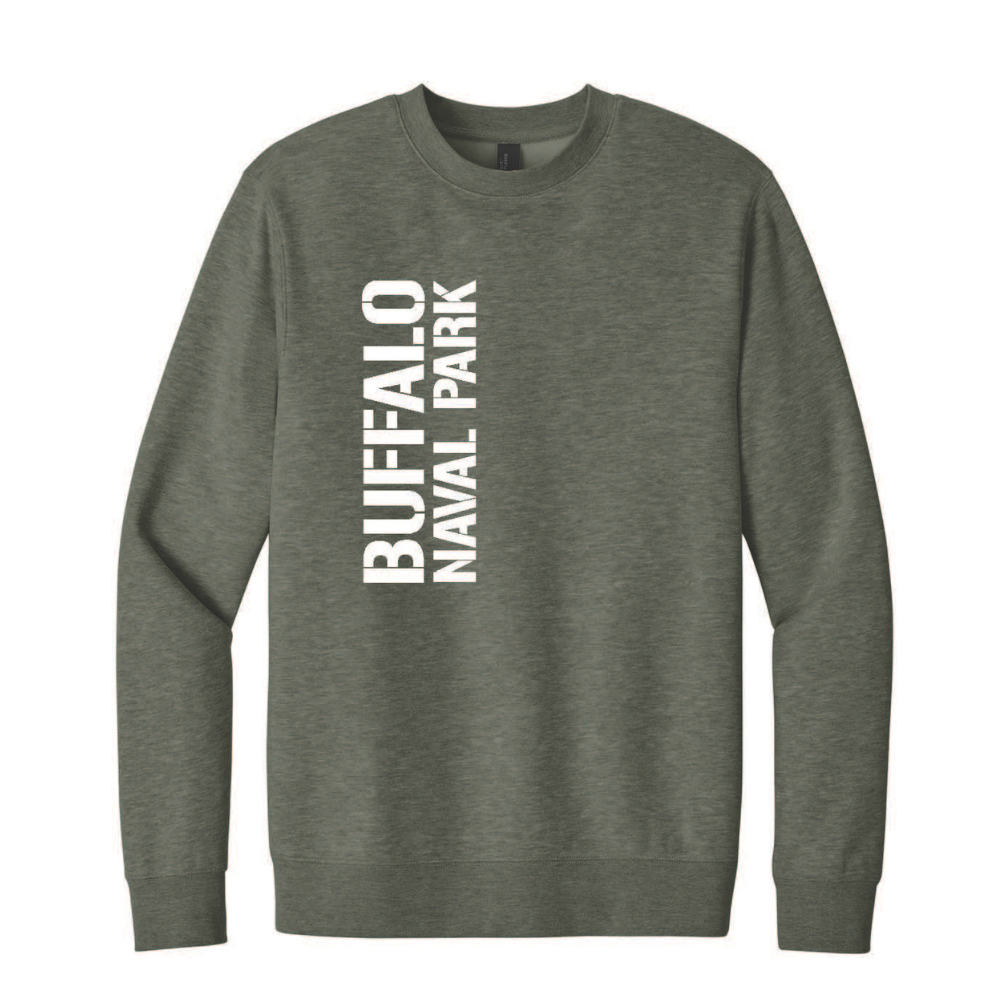The Buffalo Naval Park is a wonderful place! Cover yourself in this soft crew neck sweatshirt that pays tribute to all that we share here at the Buffalo Naval Park to achieve our mission: Honor. Educate. Inspire. Preserve. Perfect to wear all year!