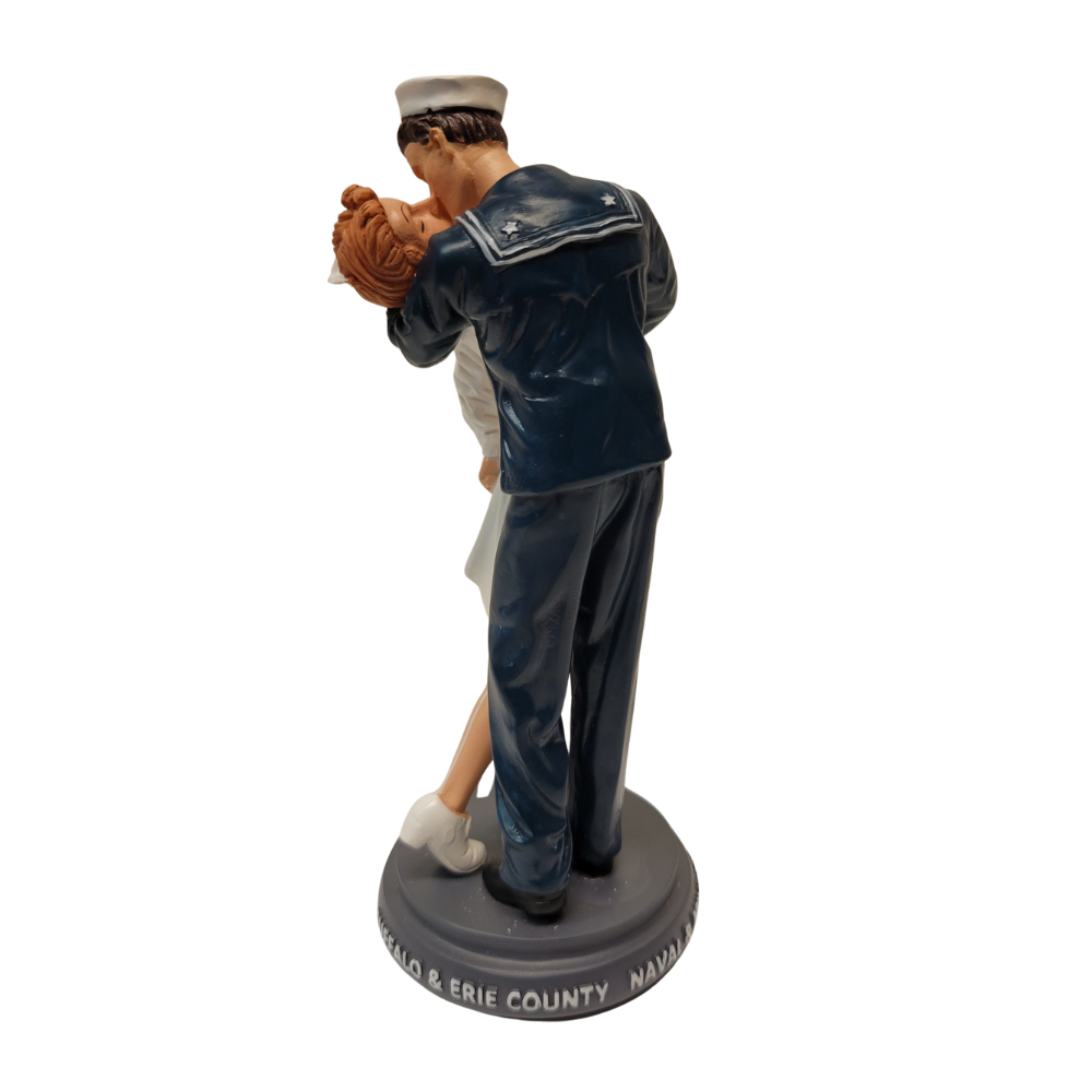 This is an exclusive collectible that you can only get here! The War is over! This is a 6 inch resin statue designed from the iconic photograph of the spontaneous kiss. The photograph was taken on August 14, 1945, in Times Square after news broke that Japan had surrendered. World War II was over! “The Kissing Sailor”, George Mendonsa, served on Buffalo Naval Park’s very own USS The Sullivans DD-537.